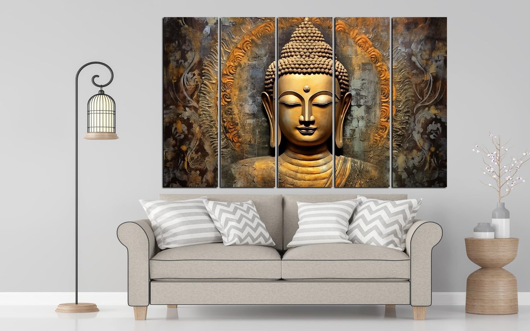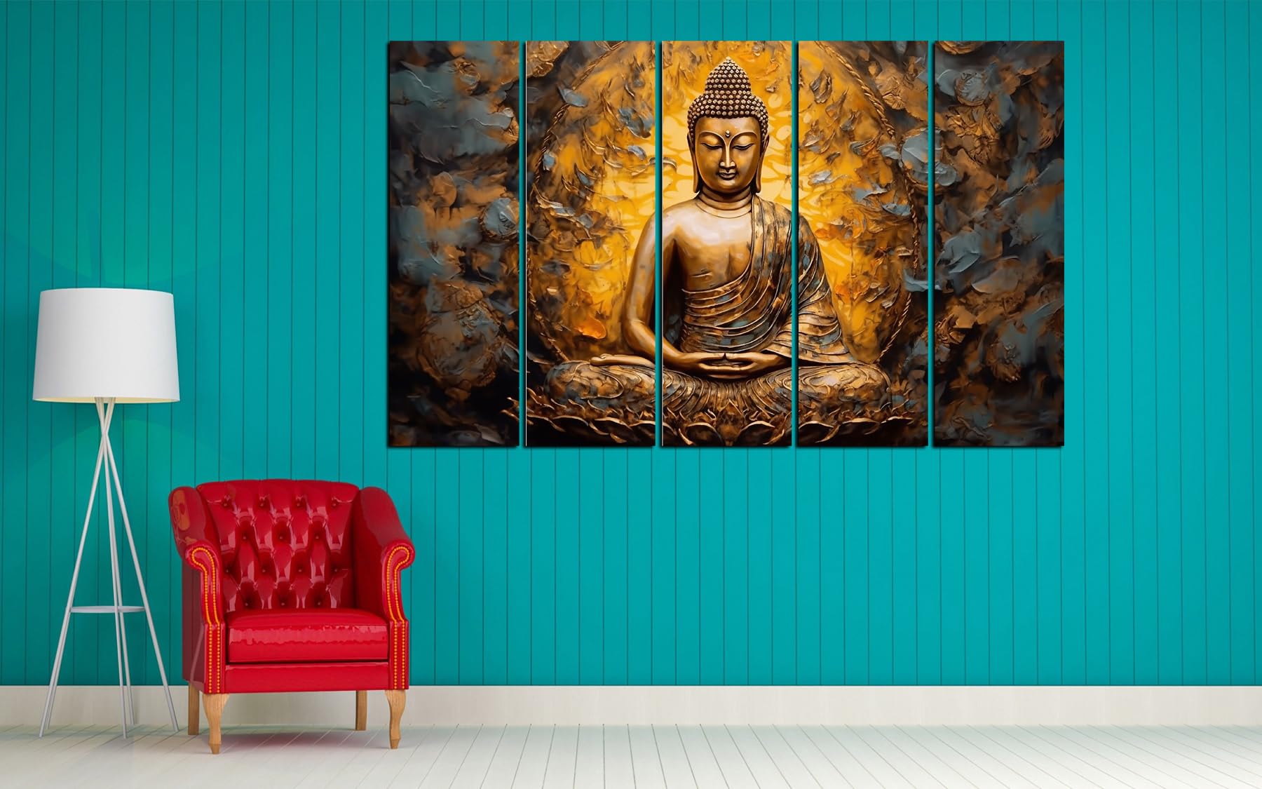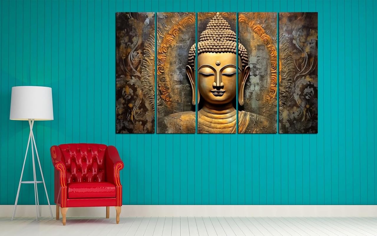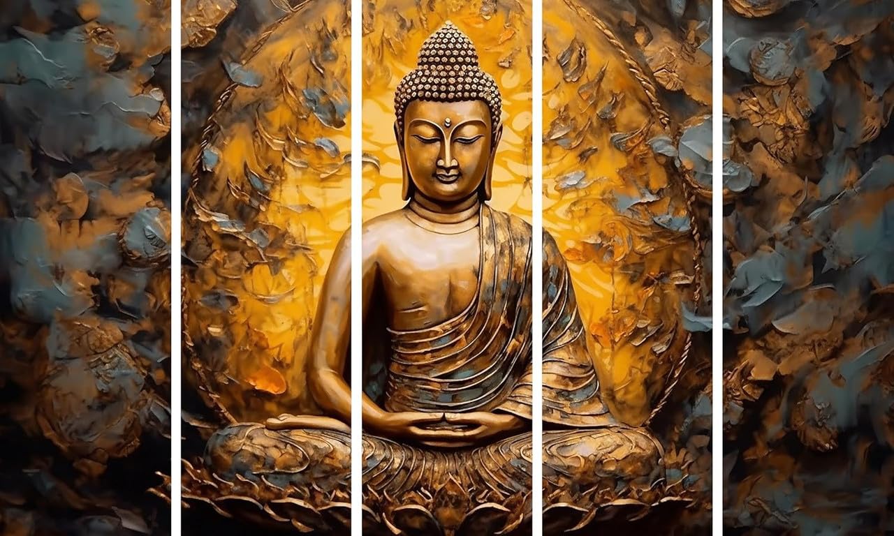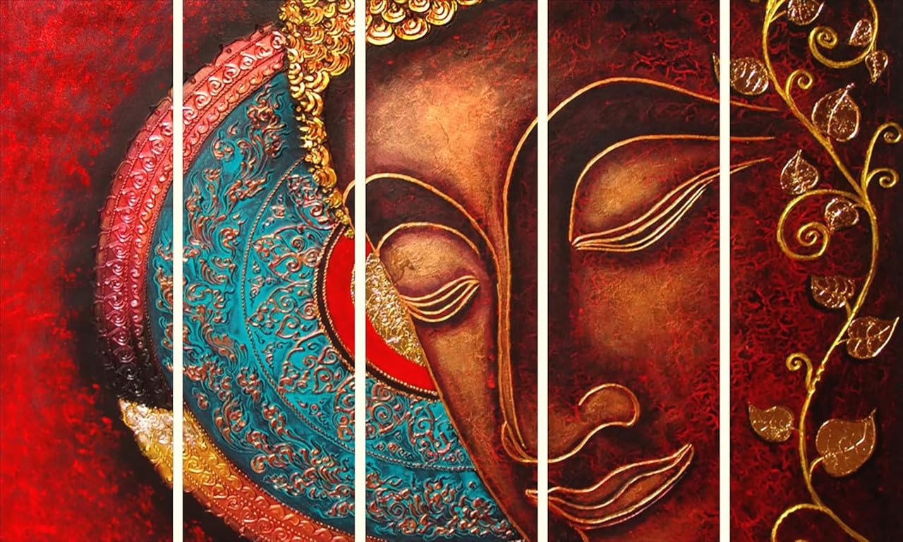 Swadeshi World with KYARA ARTS wooden framed, Buddha wall painting 30 inch x 50 inch set of 5… (Design-3)