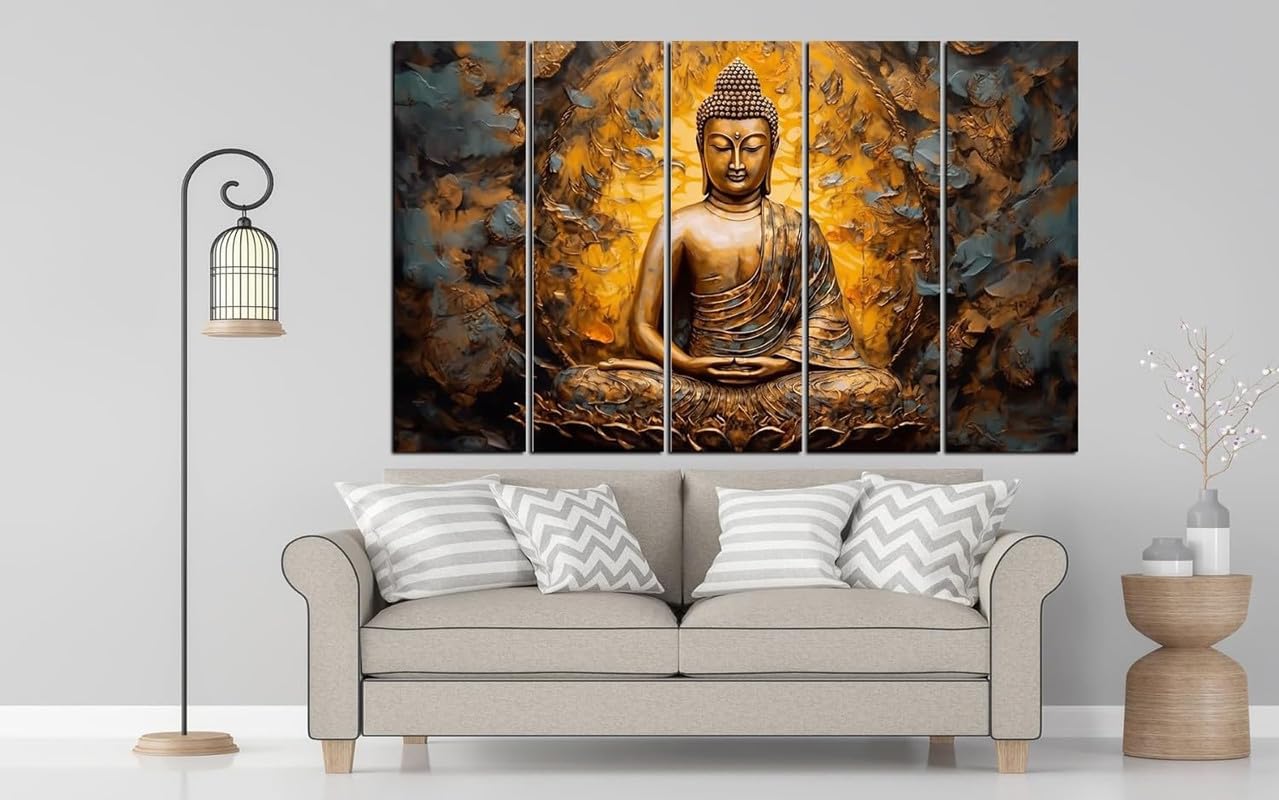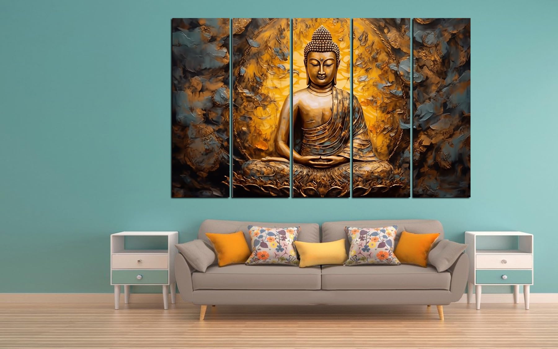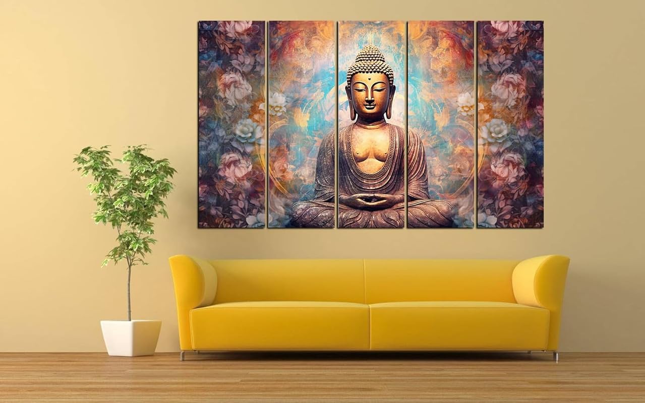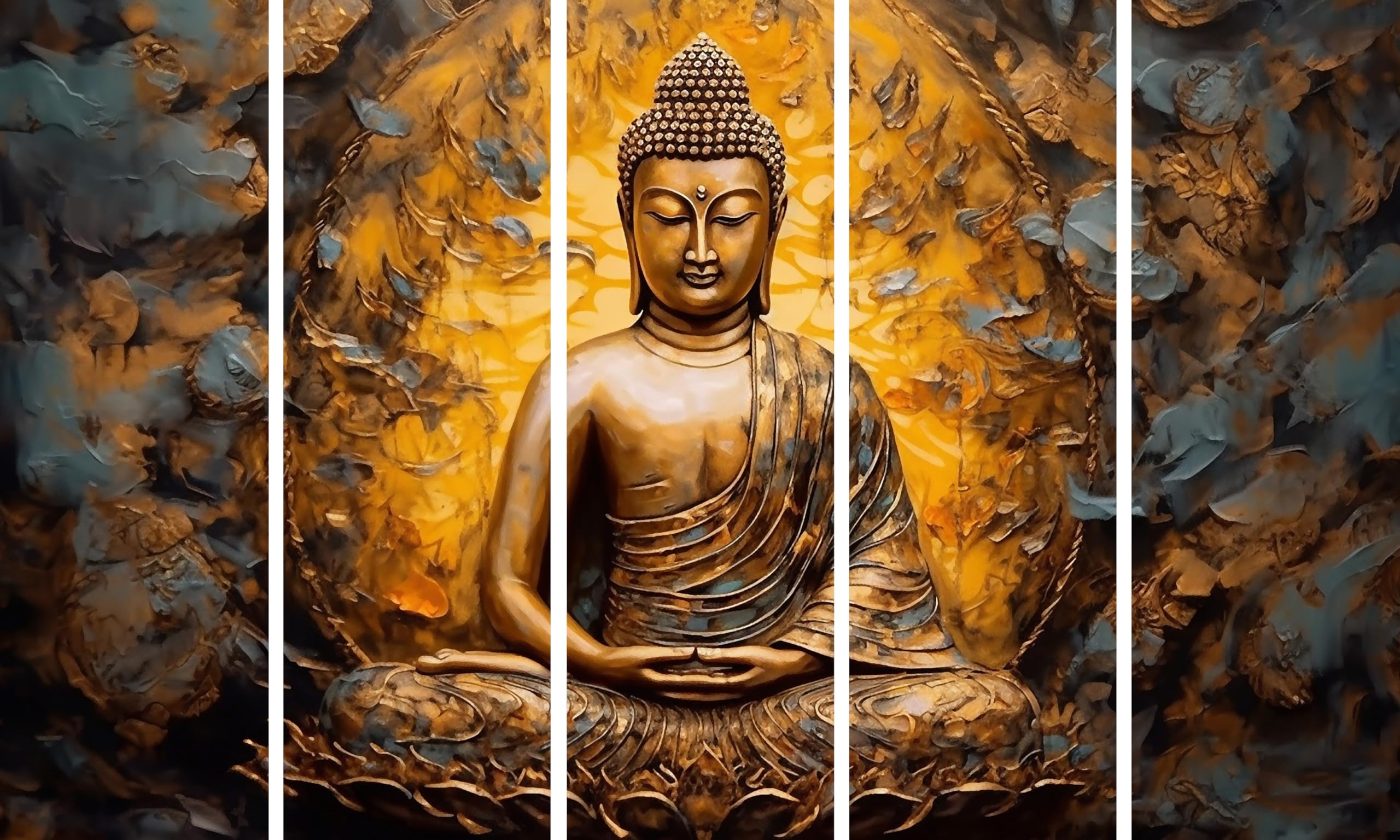 Swadeshi World with KYARA ARTS wooden framed, Buddha wall painting 30 inch x 50 inch set of 5… (Design-3)