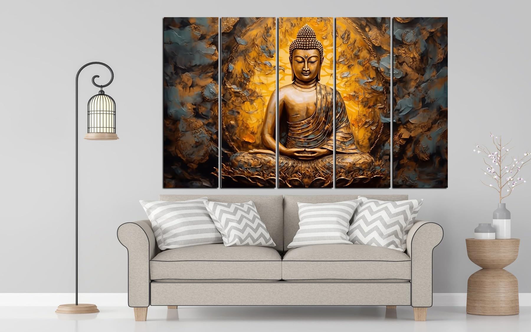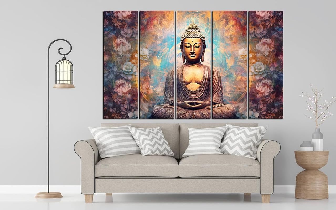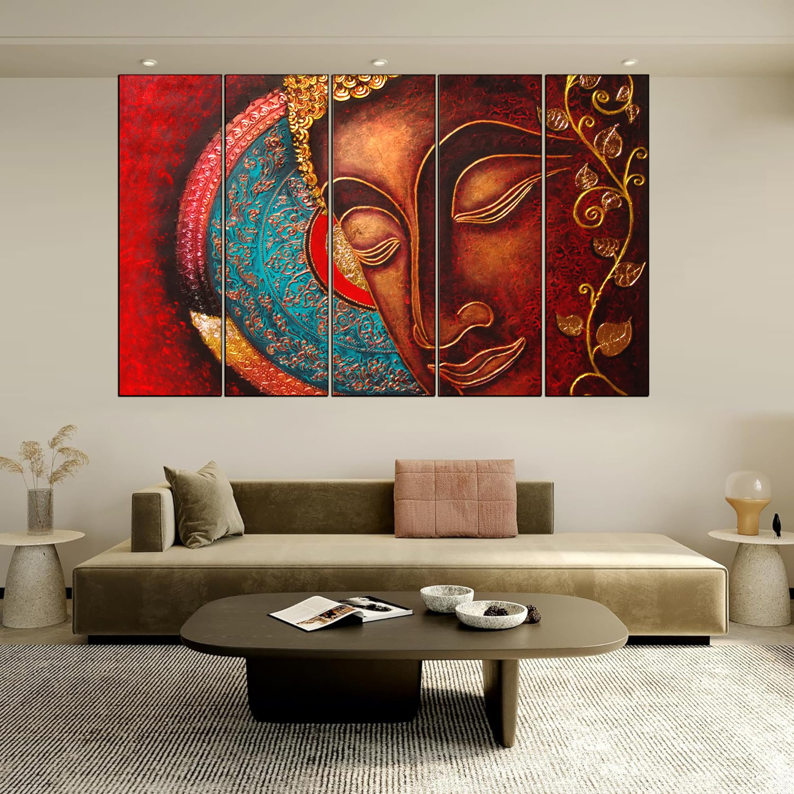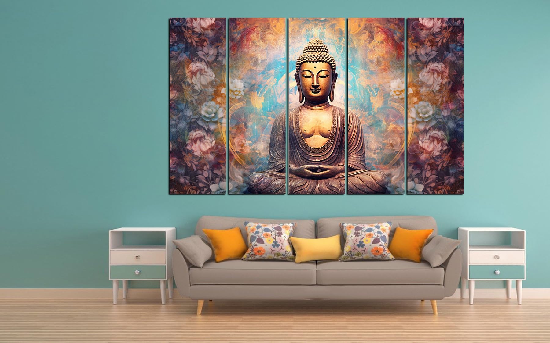 Swadeshi World with KYARA ARTS wooden framed, Buddha wall painting 30 inch x 50 inch set of 5… (Design-3)