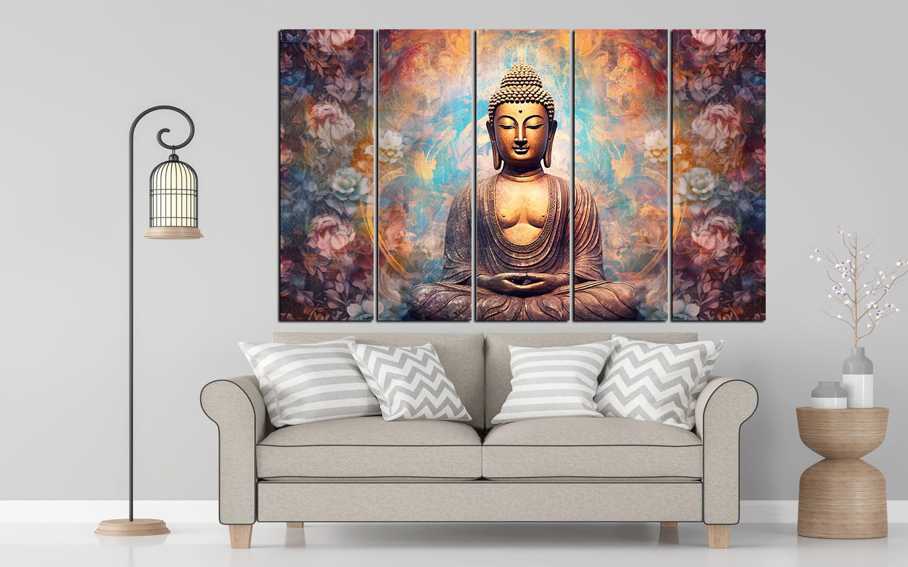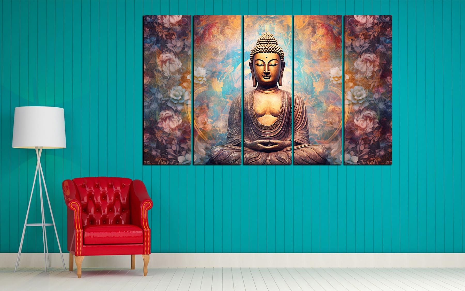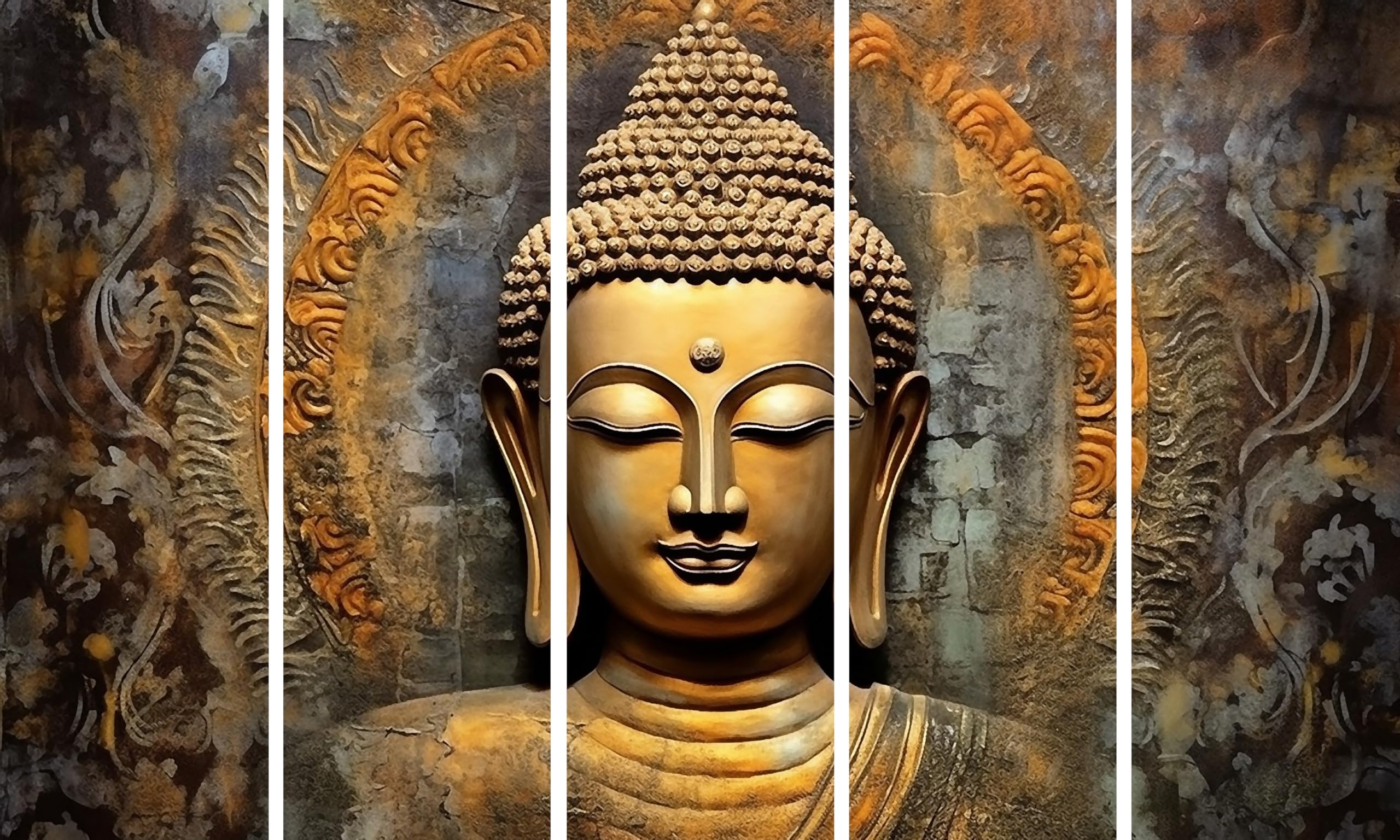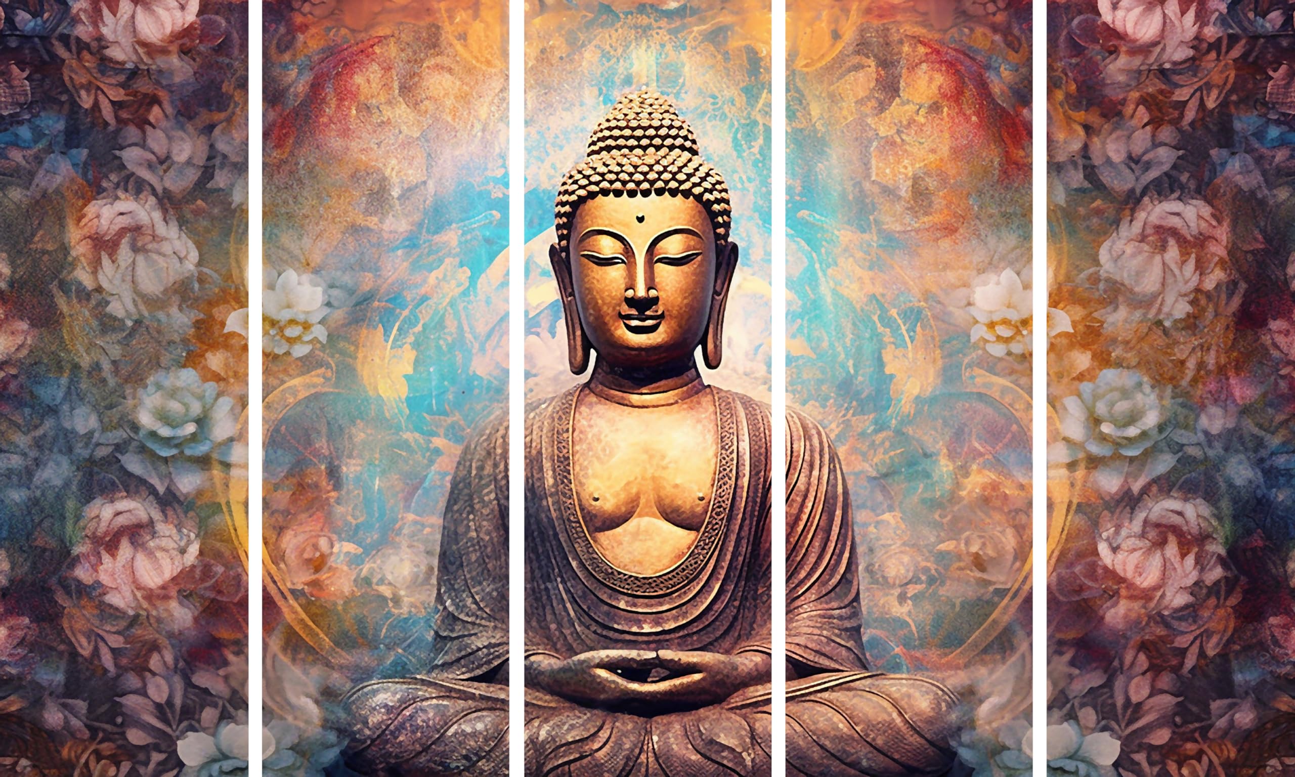 Swadeshi World with KYARA ARTS wooden framed, Buddha wall painting 30 inch x 50 inch set of 5… (Design-3)