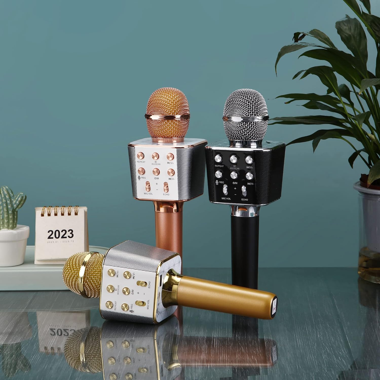 Swadeshi World M804 Wireless Bluetooth Karaoke Mic with Speaker Rechargeable FM Radio 5 Voice Changer Microphone