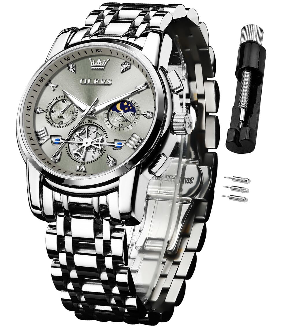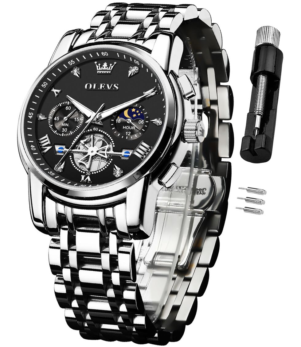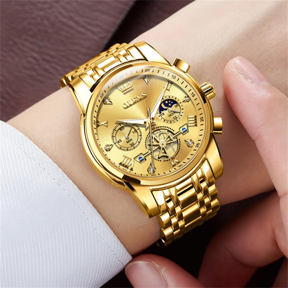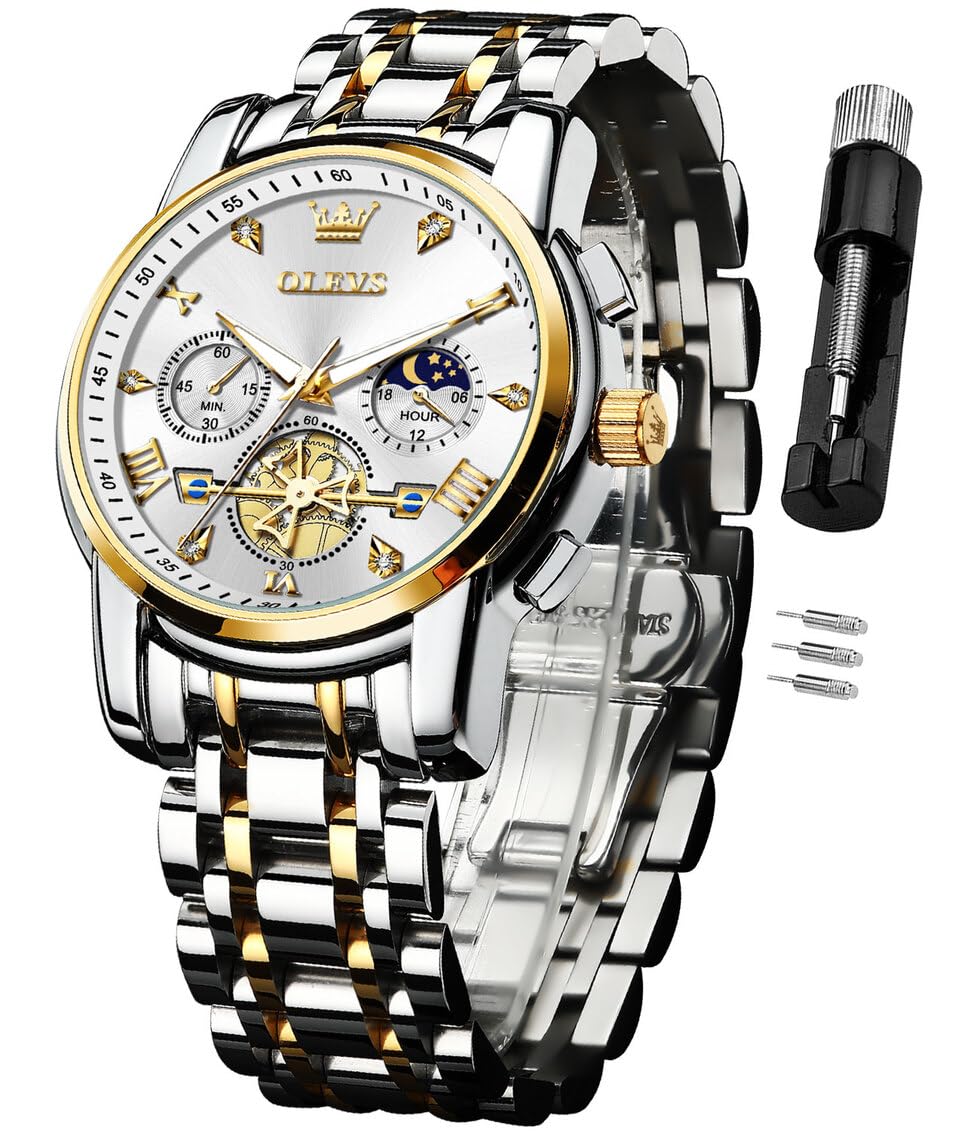 OLEVS Watch for Man Analog Quartz Skeleton Chronograph Diamond Watches Waterproof Dress Watches