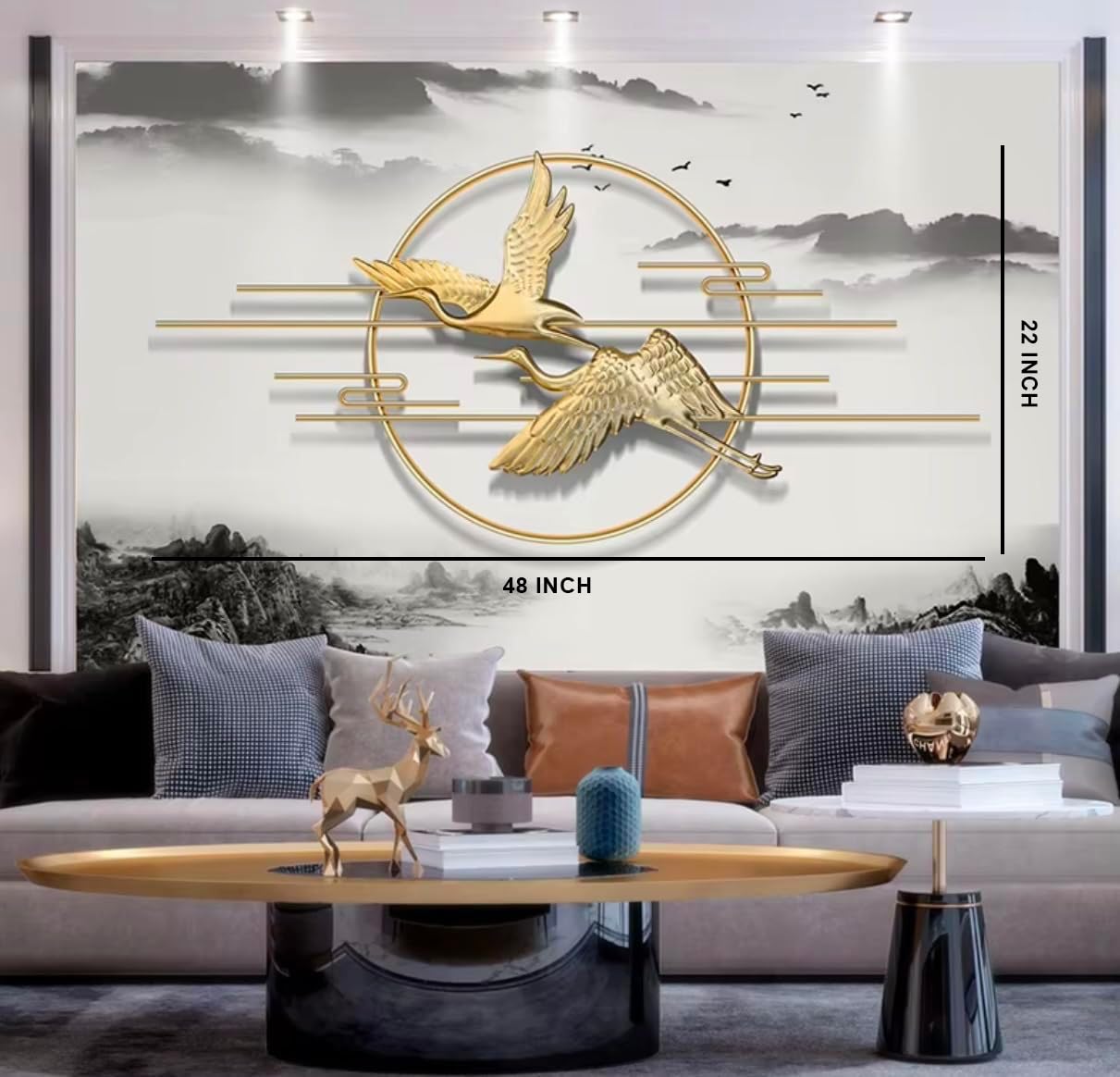 Swadeshi World Golden Flying Bird Wall Art with Metal Frame (Golden, 48 x22 inch)